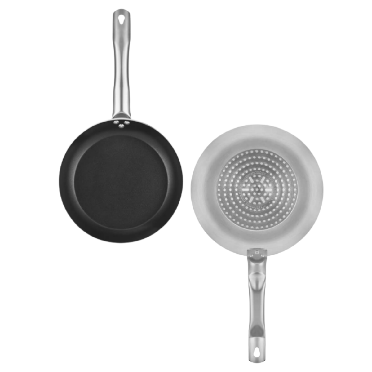 İndüksiyon diskli düz tabanı sayesinde indüksiyon ocaklar dahil farklı ocak tipleri ile uyumlu çalışır. 304 paslanmaz çelik boru sapı ve AG2 alaşım perçin sistemi ise sağlam ve güvenli bir kullanım sunar.