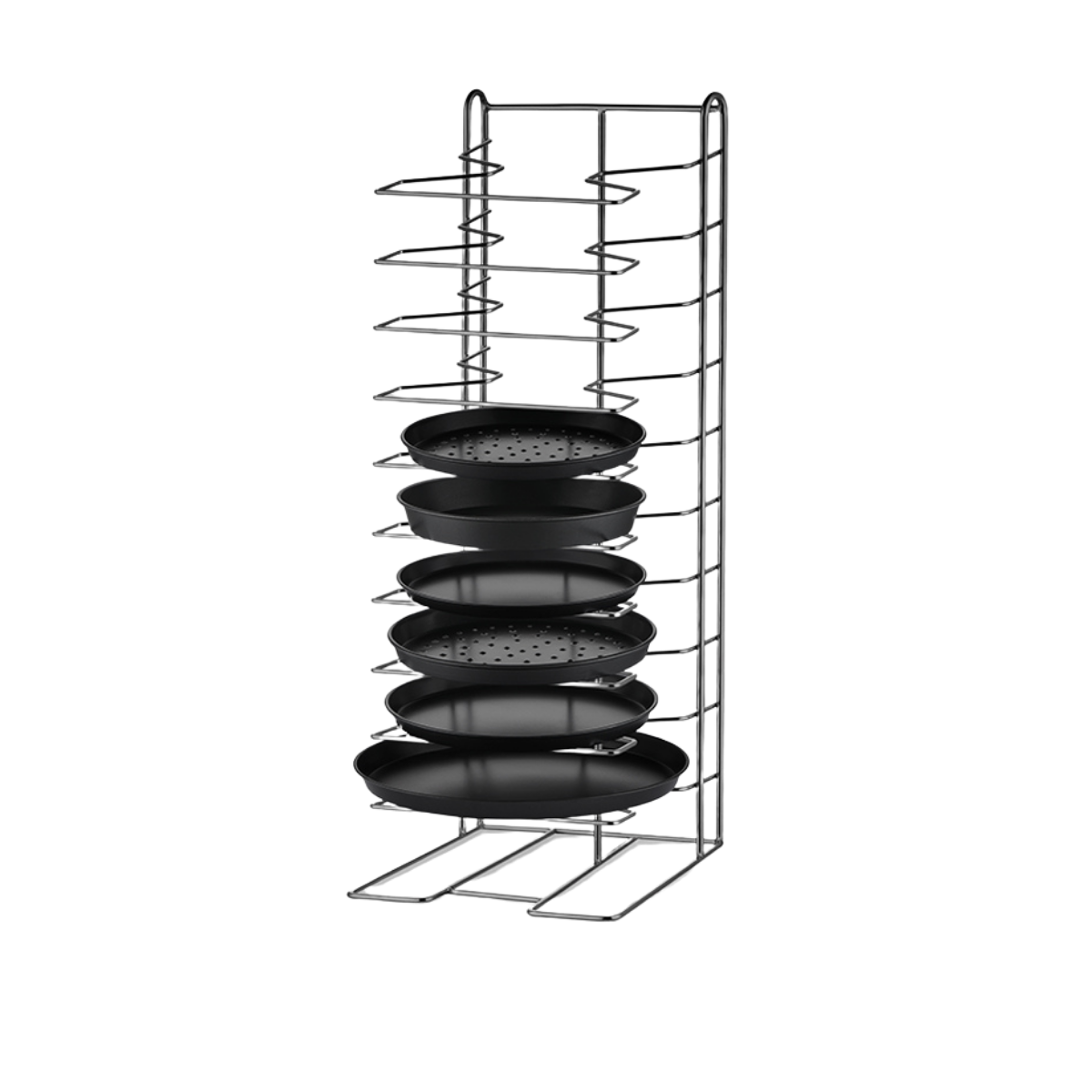 6 Katlı Kompakt Tasarım: 6 adet pizza tavasını veya tabağını güvenle istifleyerek tezgâh üzerindeki dağınıklığı önler.