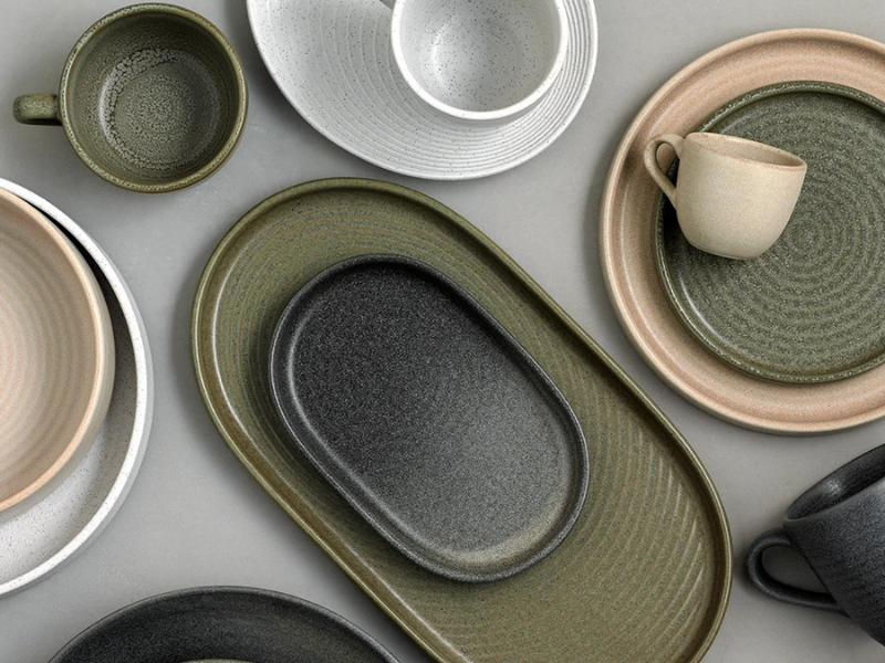 Ripple serisinin estetik formu ve reaktif sır teknolojisi ile her parça benzersiz bir görünüme sahip olduğundan, farklı renklerin birlikte kullanımı sunumlara doğal ve sofistike bir karakter kazandırır.