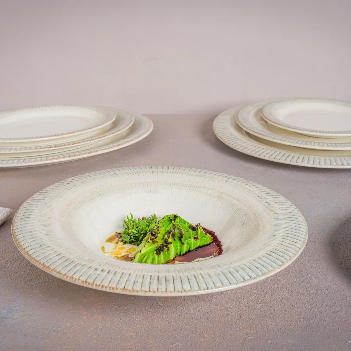 23 cm çapındaki çukur formu; makarna, risotto, bowl sunumları, ana yemekler ve soslu tabaklar için ideal bir derinlik ve hacim sunar. Tabak formu, yemeği nazikçe sararak sunumun merkezde kalmasını sağlar ve şeflere özgür bir tabaklama alanı yaratır.