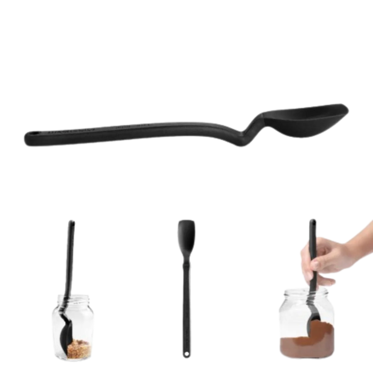 Düz spatula benzeri silikon ucu ve esnek sıyırıcı yan yüzeyleri, kavanoz, kase ve dar ağızlı kaplarda kalan en küçük kalıntıları bile zahmetsizce sıyırır. Böylece israfı önler ve her damlanın değerlendirilmesini sağlar. Benzersiz sap tasarımı sayesinde kaşık bırakıldığında başlığı tezgâha temas etmeden yukarıda kalır; bu da hijyenik kullanım sunarken mutfak yüzeylerinin temiz kalmasına yardımcı olur.
