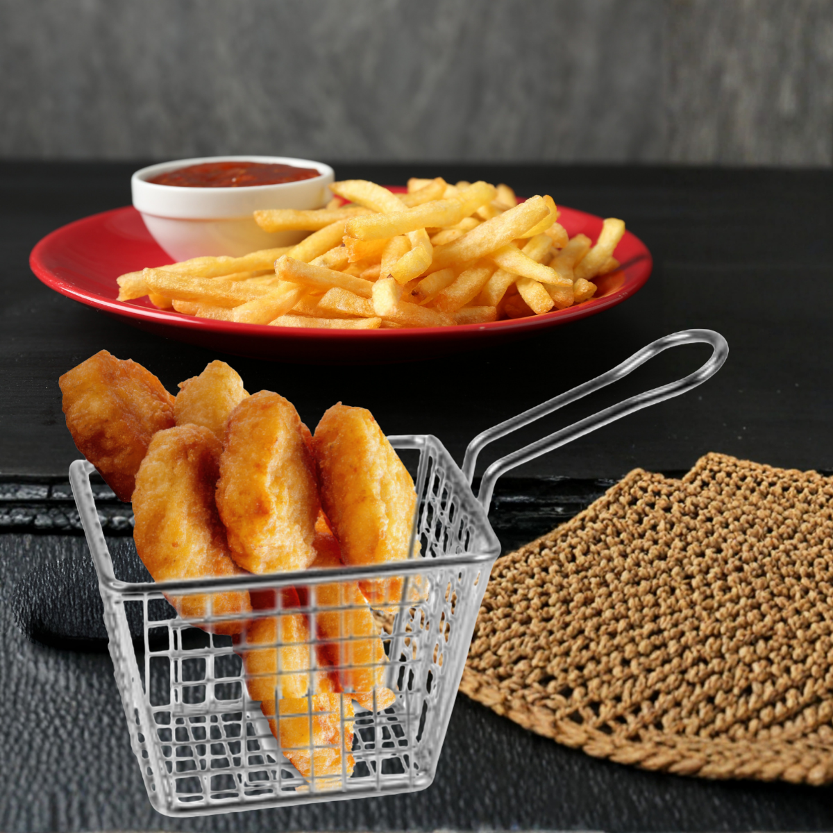 Epinox PSK-09 patates sunum sepeti, modern ve pratik tasarımıyla özellikle kafe ve restoran sunumlarında fark yaratır. Kare ve seyrek tel yapısı sayesinde hem estetik hem de fonksiyonel bir kullanım sunarak patates, sosis ve atıştırmalık servislerini şık hale getirir.
