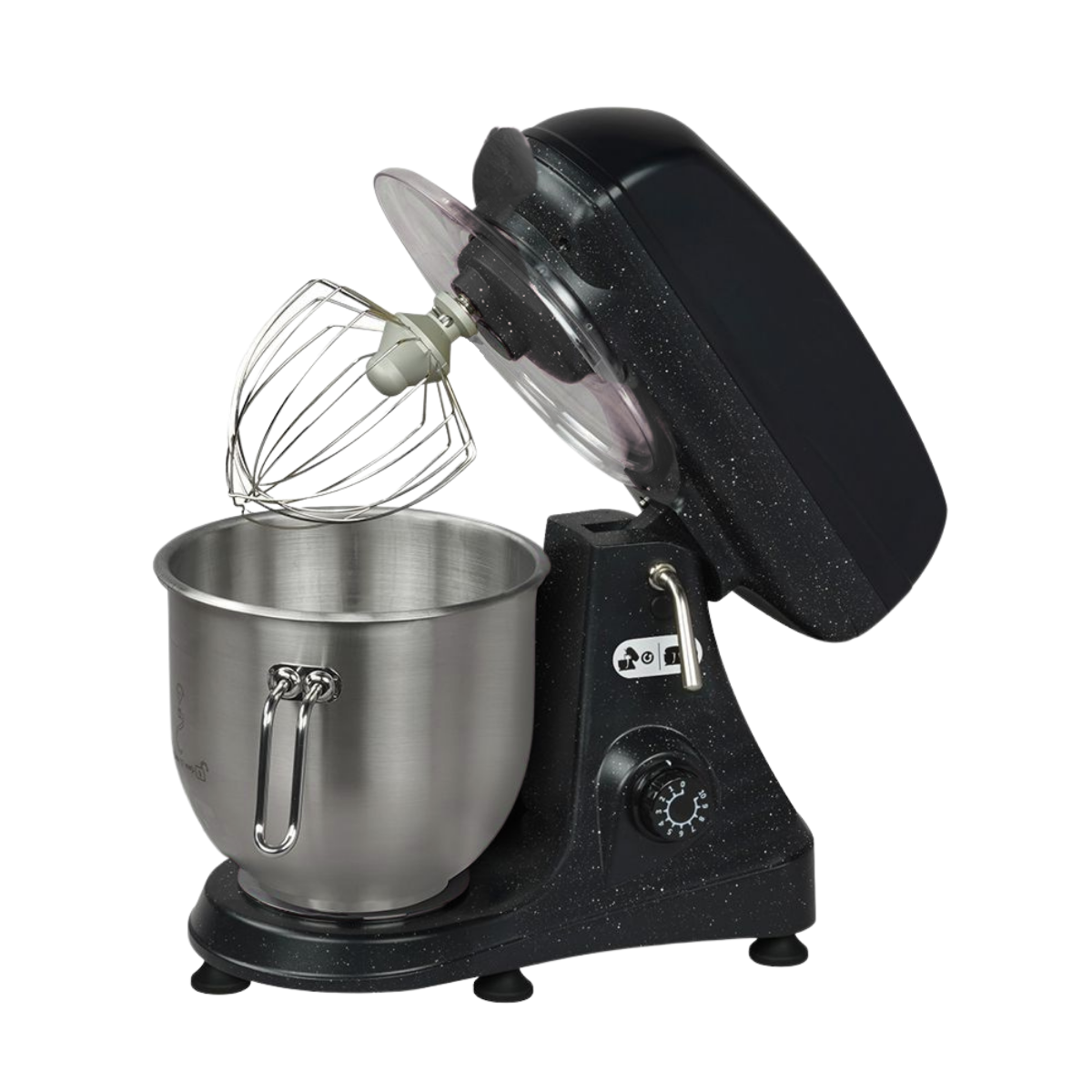 Hareketli başlık sistemi, kazan ve aparatların kolayca çıkarılmasını sağlayarak temizlik ve kullanım konforunu artırır. Hız kontrollü motoru sayesinde farklı karışımlar için ideal devir ayarı yapılabilir. Emniyet switchi ise güvenli kullanım sunar.